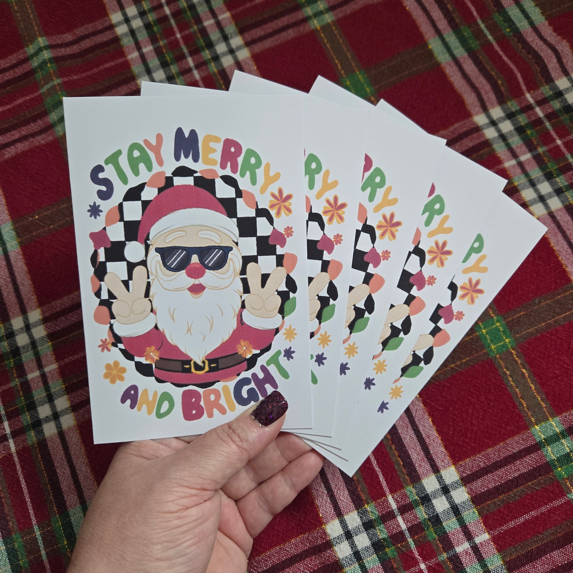 5-Pack Merry and Bright Santa Christmas Cards – 4x6 with Envelopes & Stickers