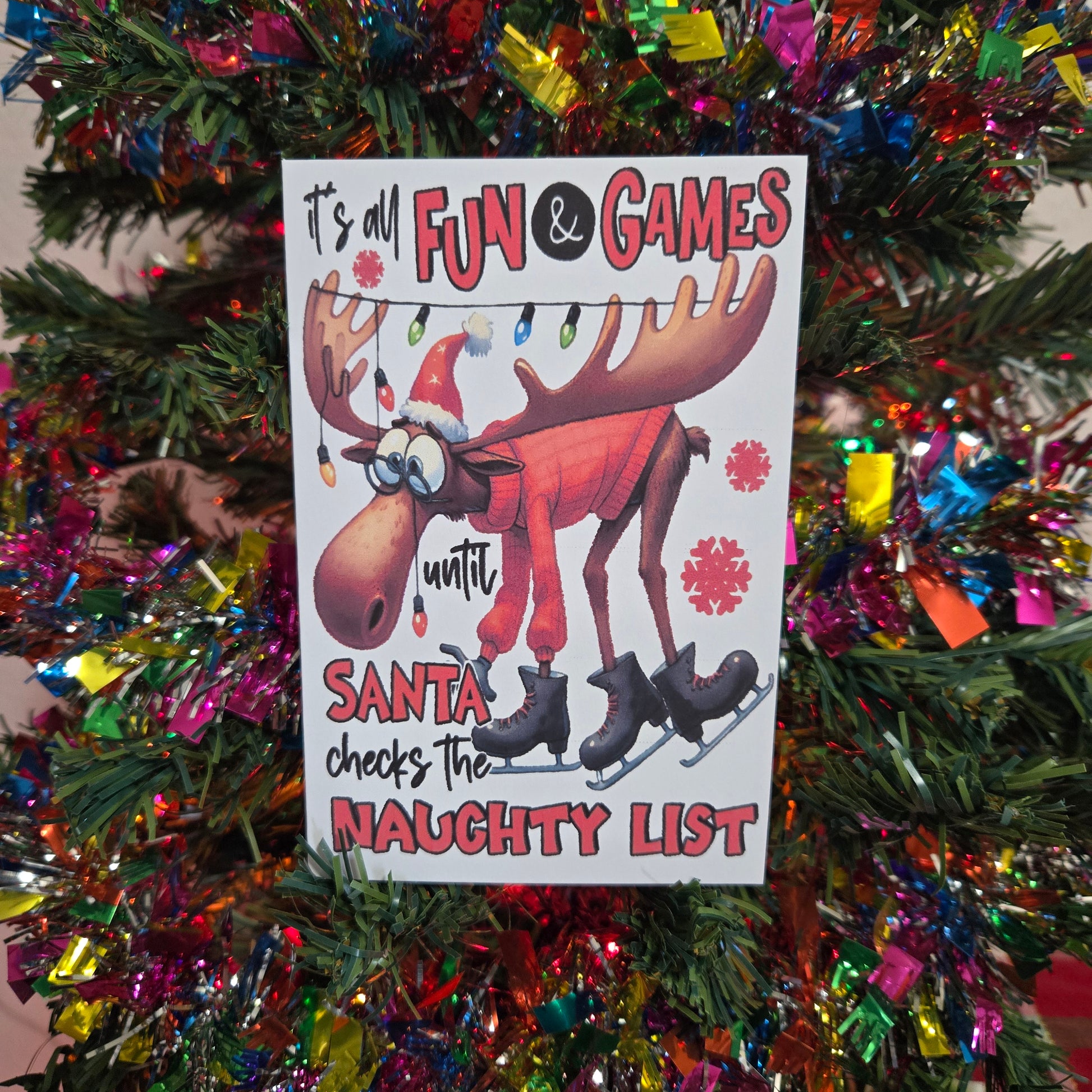 5-Pack Moose "It's All Fun and Games" Christmas Cards – 4x6 with Envelopes & Stickers