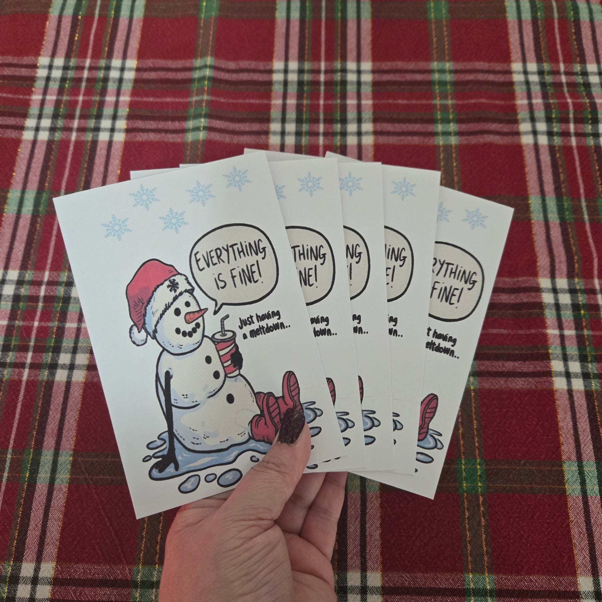 5-Pack Snowman "Everything is Fine" Christmas Cards – 4x6 with Envelopes & Stickers