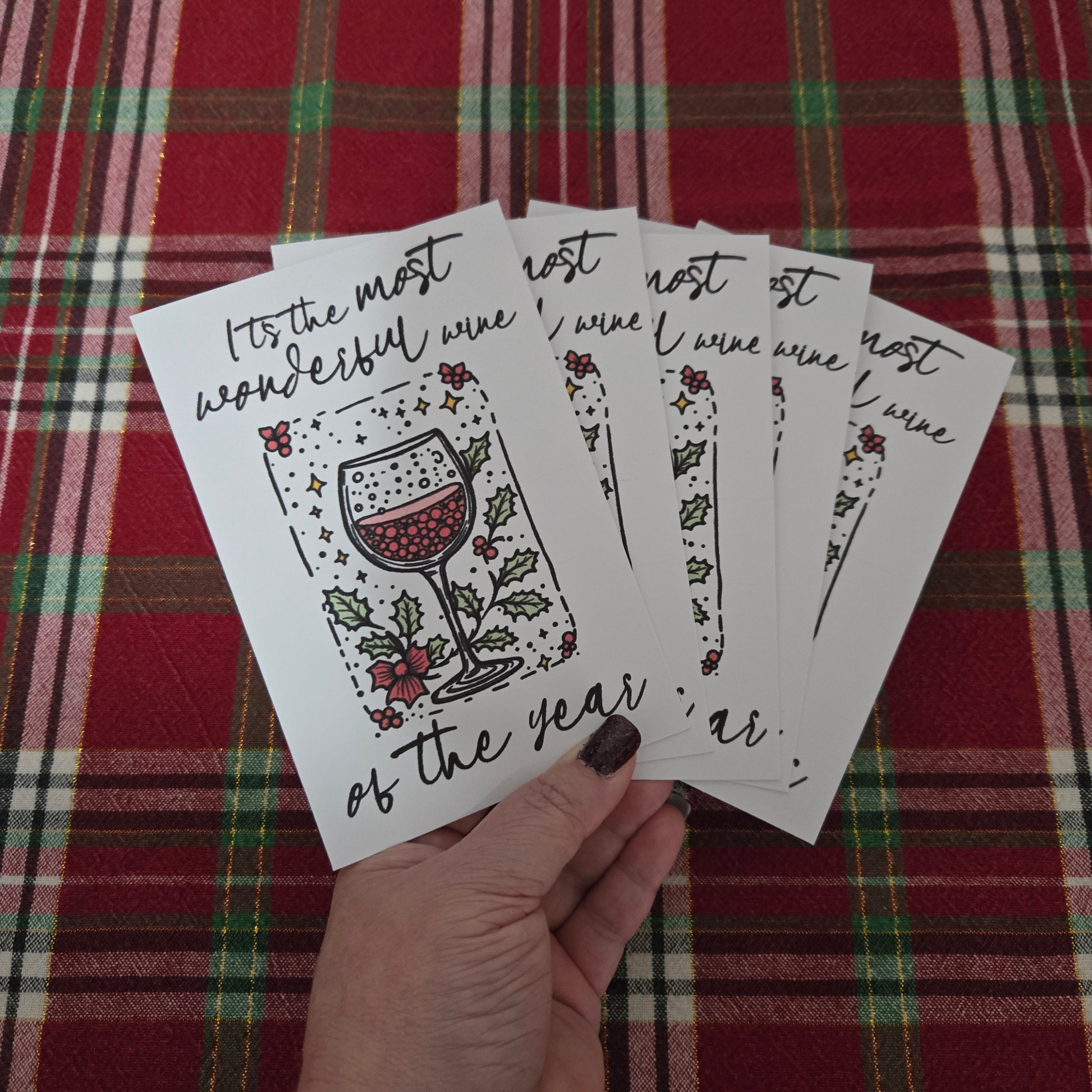 5-Pack Wine of the Year Christmas Cards – 4x6 with Envelopes & Stickers