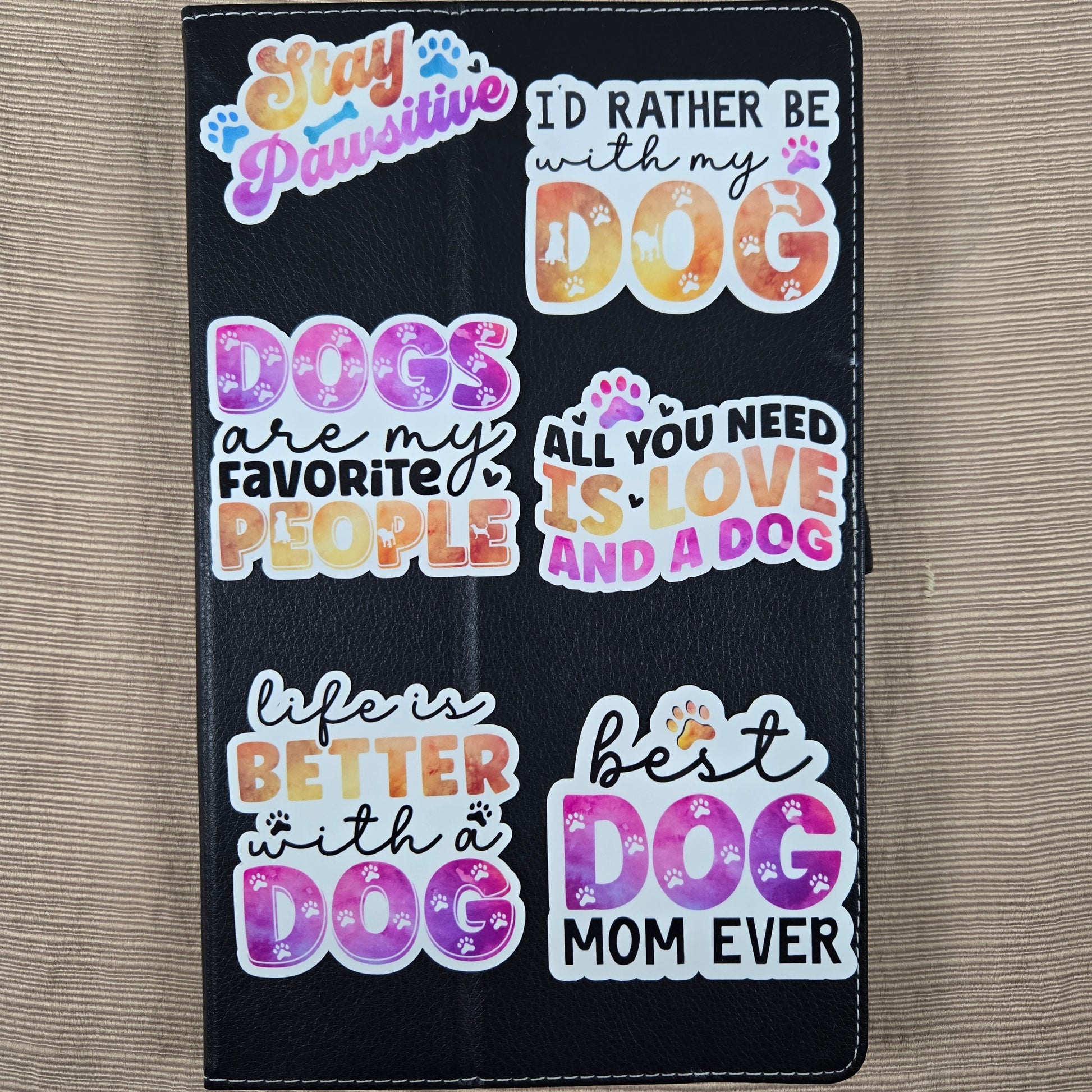 Fun Dog Quote Stickers come in a set of 6 unique designs! Each 3-inch sticker is laminated and water-resistant, sticking securely to plastic, metal, glass, or any smooth surface. Perfect for personalizing your laptop, water bottle, notebook, or phone case, these lively designs bring a playful and bold energy. Great for collecting and trading with friends, these durable and eye-catching stickers are an ideal way for dog lovers to express themselves and stand out