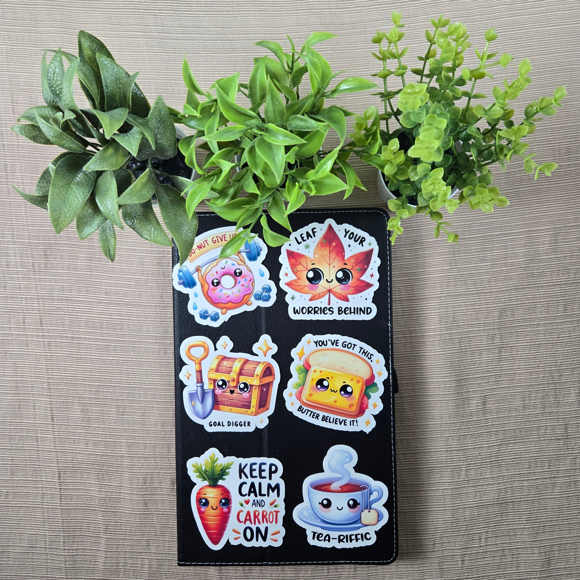 Bring a burst of joy and sparkle with these Kawaii Stickers! Each 3-inch sticker shines with a dazzling holographic finish that gleams from every angle. Durable, laminated, and water-resistant, they stick effortlessly to any clean, smooth surface—perfect for sprucing up your laptop, customizing your water bottle, or brightening your favorite notebook. With six delightful designs available, mix and match to add fun flair to your stuff or share with friends for extra smiles. Pop these cute stickers wherever you want a splash of cheerful shine!