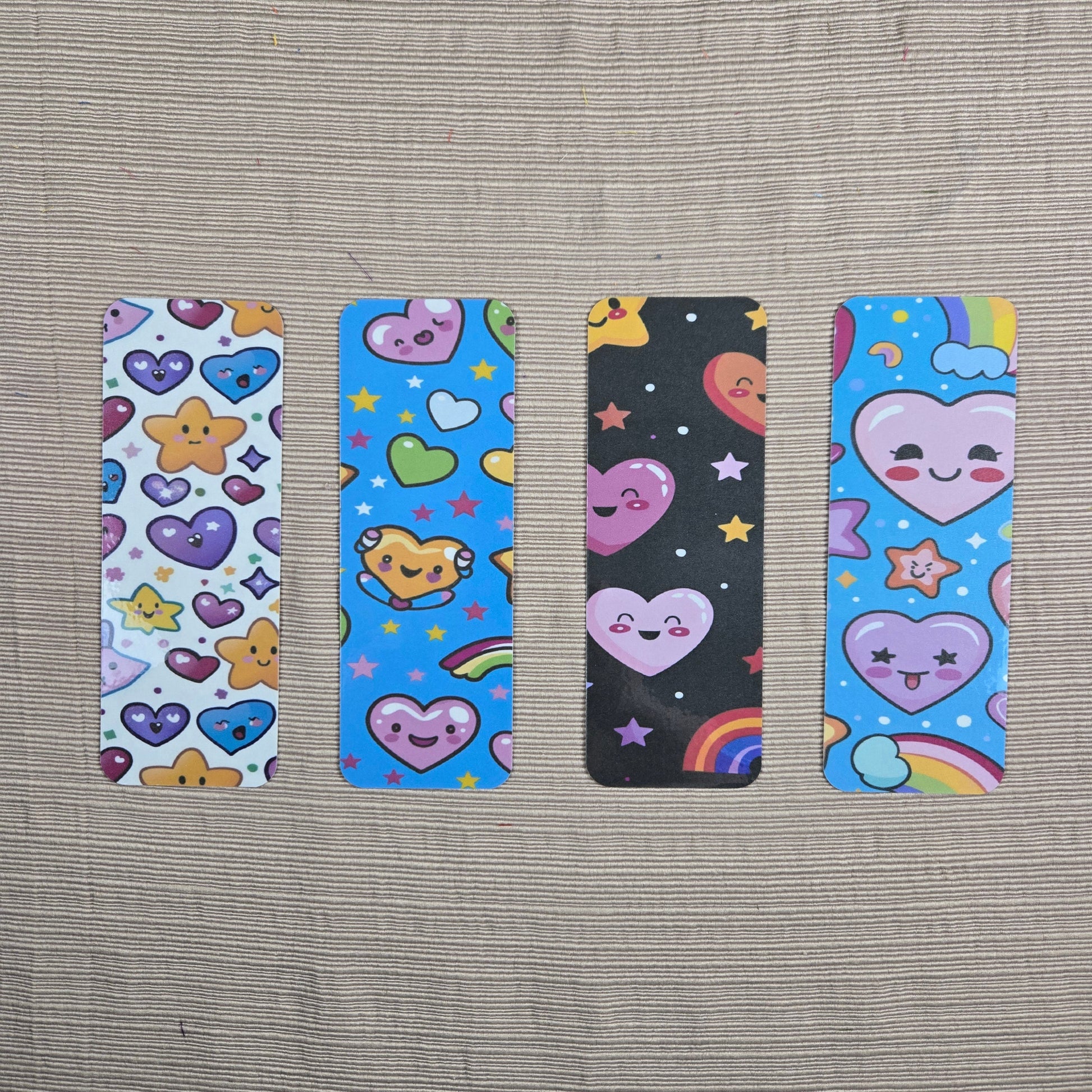 Elevate your reading experience with these Kawaii Hearts & Stars bookmarks, adorned with vibrant, cheerful designs on both sides.