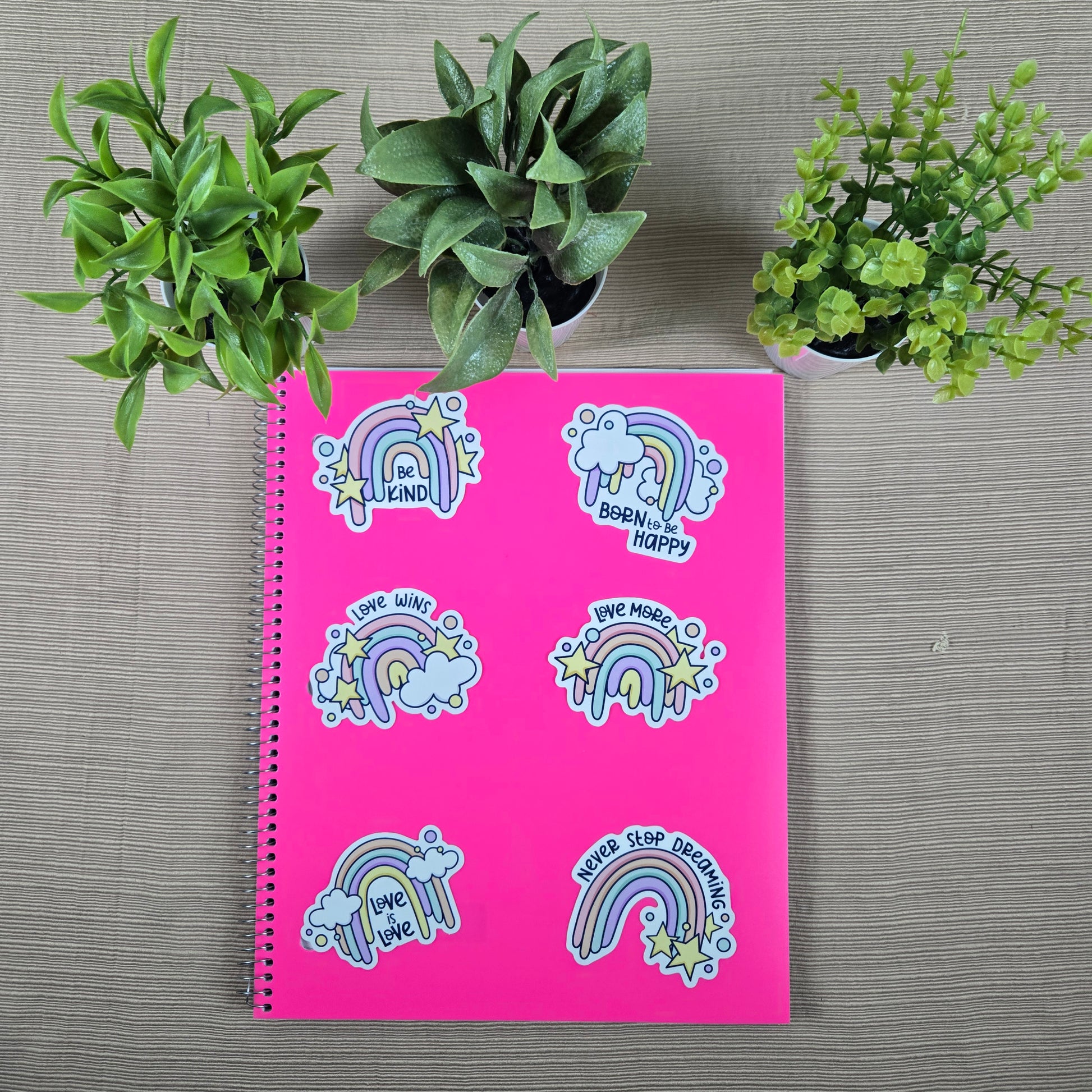 Show your fearless spirit with this set of 6 vibrant Rainbow Love Stickers! Each 3-inch sticker is laminated and water-resistant, clinging strongly to plastic, metal, glass, or any smooth surface. Whether you're customizing your laptop, water bottle, notebook, or phone case, these bold designs deliver a daring, playful energy. Ideal for collecting and swapping with friends, they ignite smiles and a spark of rebellion wherever they stick. Durable and eye-catching, these stickers make the perfect statement for anyone ready to stand out.
