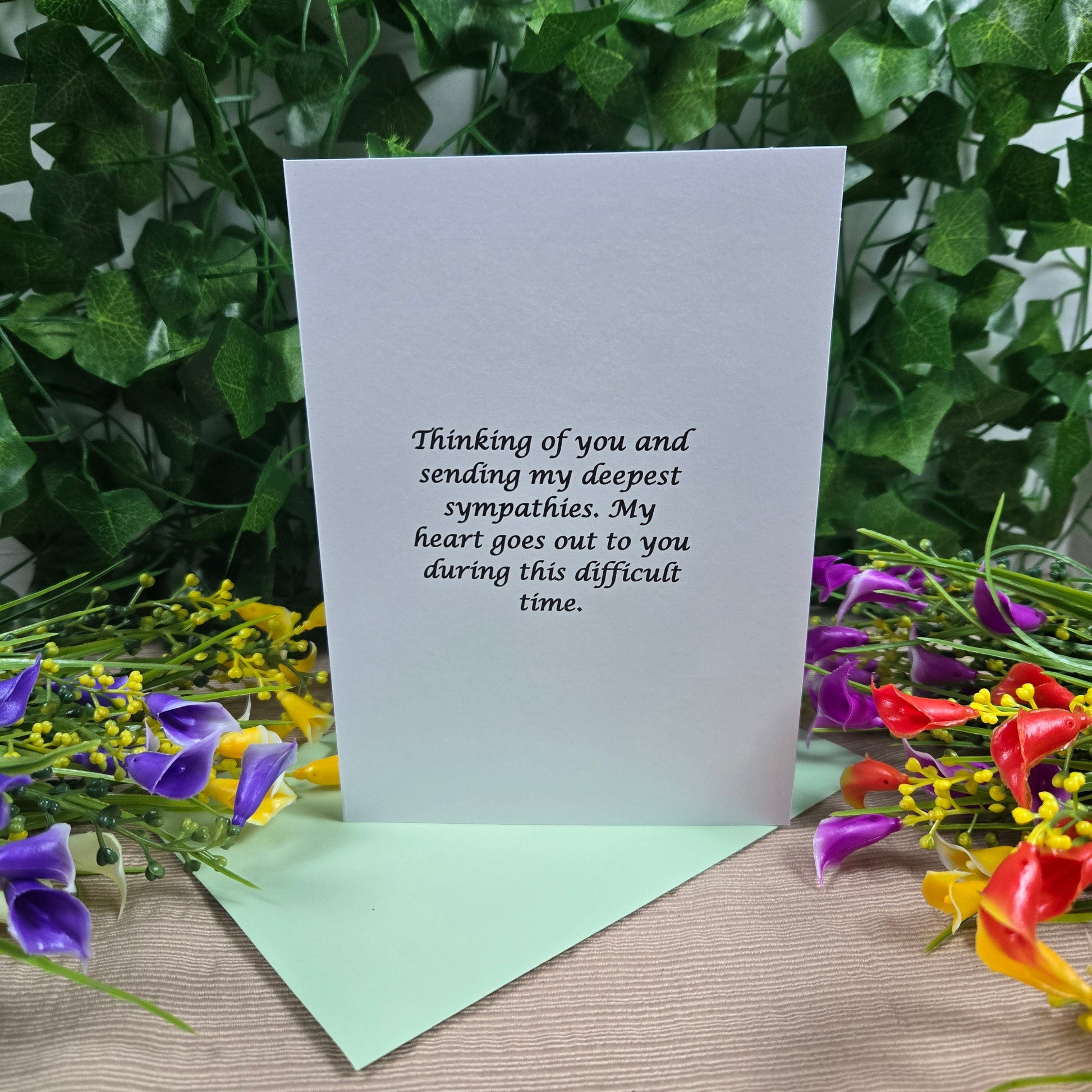 Inside message: "Thinking of you and sending my deepest sympathies. My heart goes out to you during this difficult time."